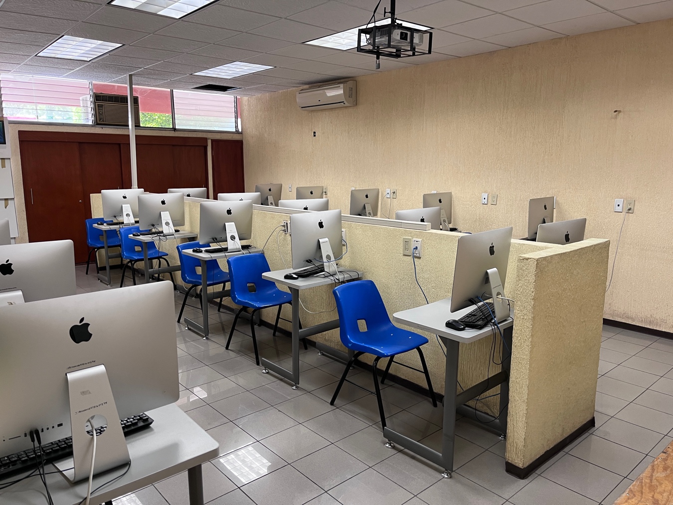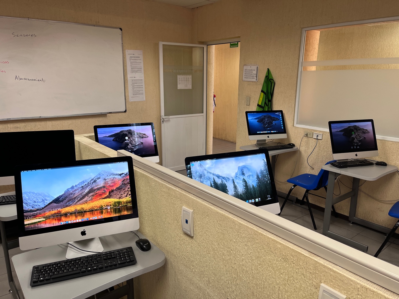 Actualmente está equipado con 20 computadoras IMac de altas prestaciones, con capacidades de almacenamiento y procesamiento suficientes para utilizar las tecnologías de desarrollo de software actuales, en especial para diseño y desarrollo de aplicaciones móviles tanto para IOS como Android. Cuenta con aire acondicionado, proyector de alta resolución, pintarrón y espacio estratégico para que el profesor pueda impartir su cátedra de manera cómoda y eficaz.